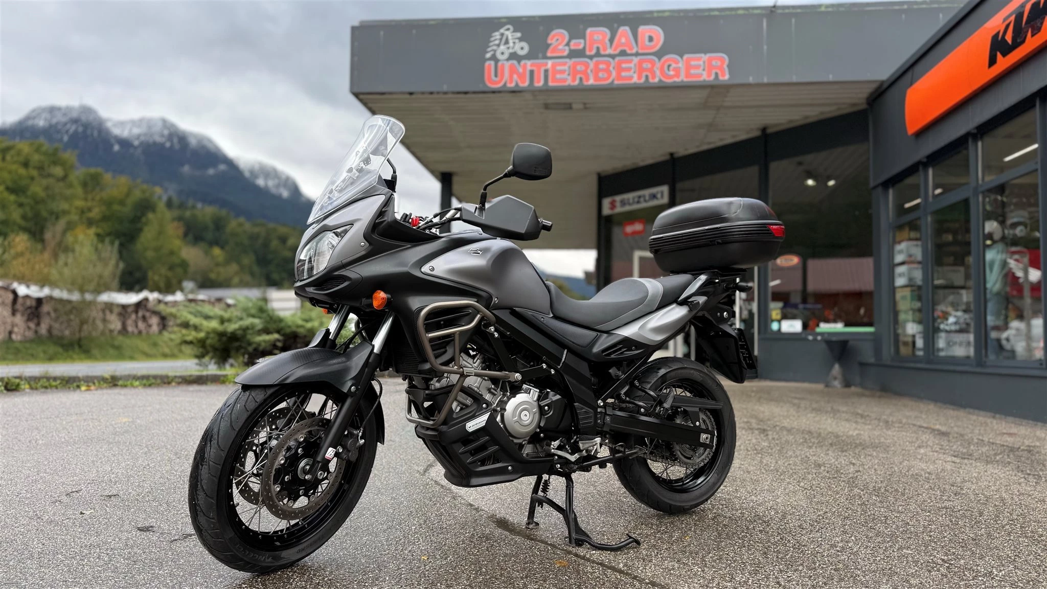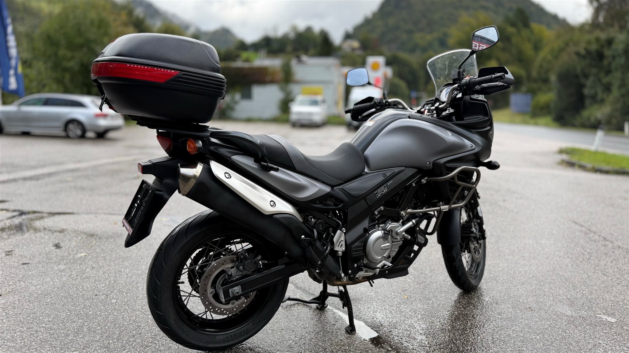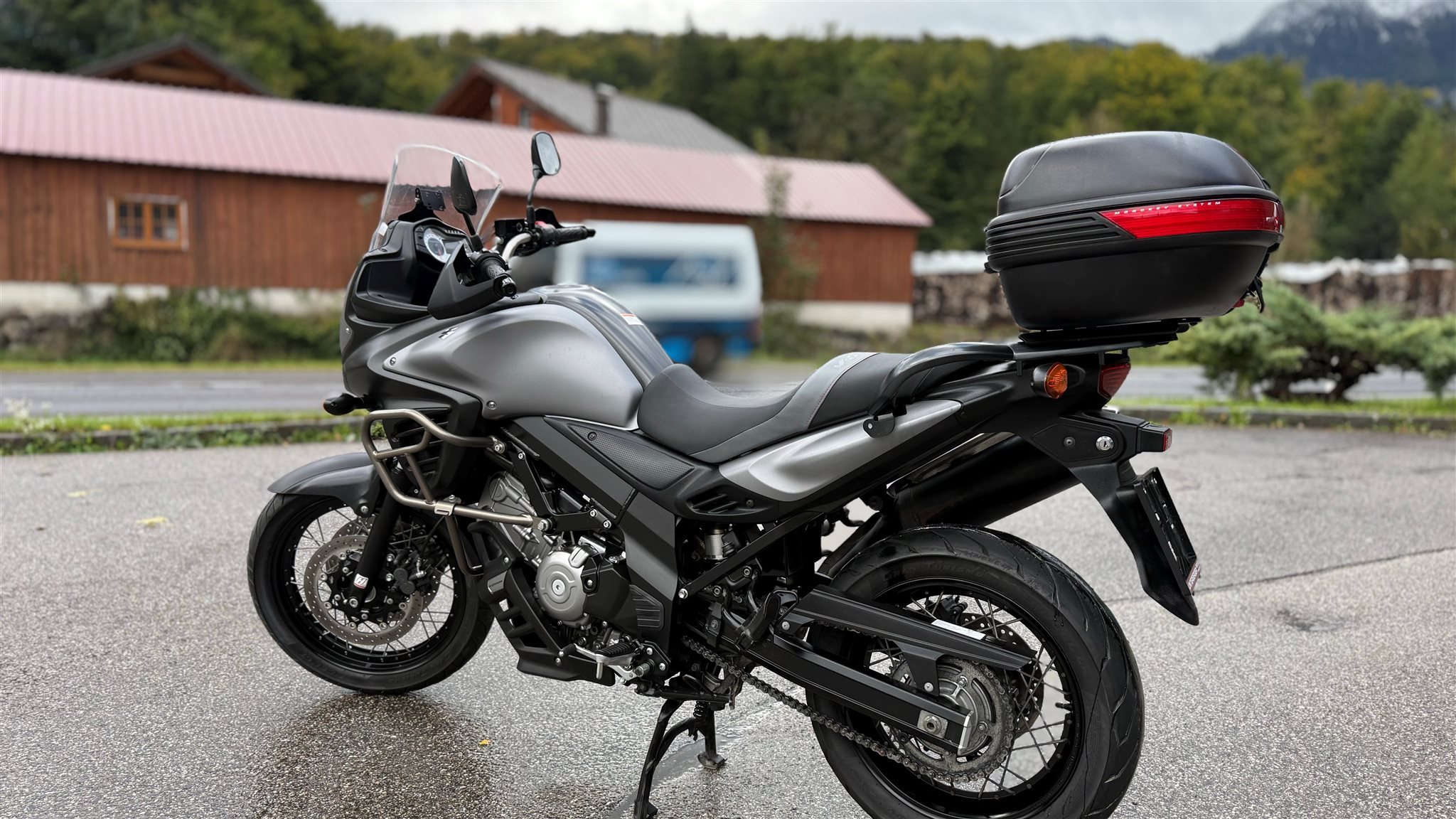Zum Verkauf steht eine gepflegte Suzuki DL 650 V-Strom mit Topcase, Hauptständer, Sturzbügel und Motorschutz